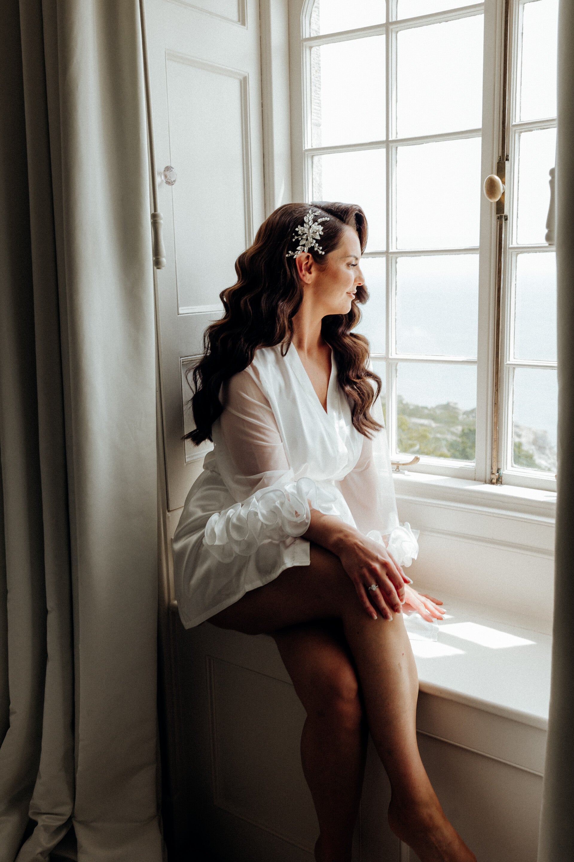 I remain with you until you are dressed and ready to leave, providing final touch-ups, placing your veil, and ensuring every detail is perfected before you walk down the aisle.